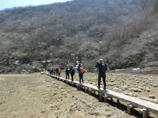 当日は、晴天の中、残雪がある鍋割峠、佐渡窪の木道を通り鉾立峠まで歩きました。 佐渡窪の木道からは、青空に映えるマンサクの黄色い花を満喫しました。 また、久住草原の野焼きが実施されており、帰りの駐車場から雄大な燃え上がる炎を 見ることが出来ました。 お疲れさまでした 戻る