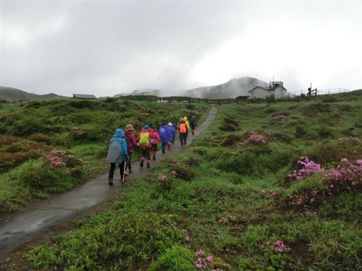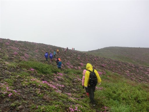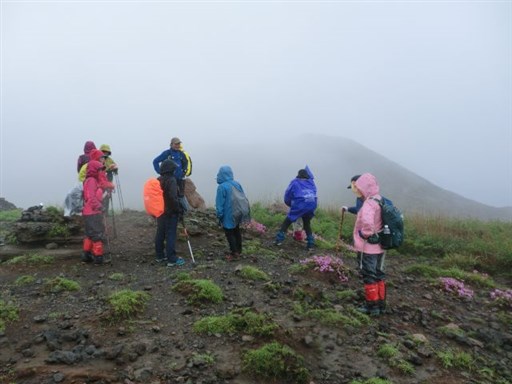 当日は、小雨の中でしたがミヤマキリシマを観賞しながら、皿山と中岳・高岳の分岐点まで登り、 砂千里を通り火口見学をして下山しました。 サワフタギの白い綿みたいな花やマイズルソウの可憐な花も見ることが出来ました。 また、日曜日なので、火口見学は多くの観光客で賑わっていました。 お疲れさまでした 戻る